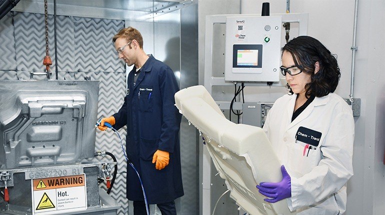 O desmoldante em uso também foi substituído por um produto Chem-Trend mais adequado, projetado especificamente para aplicações de espuma de alta resiliência e popular entre os clientes que usam poliuretano.